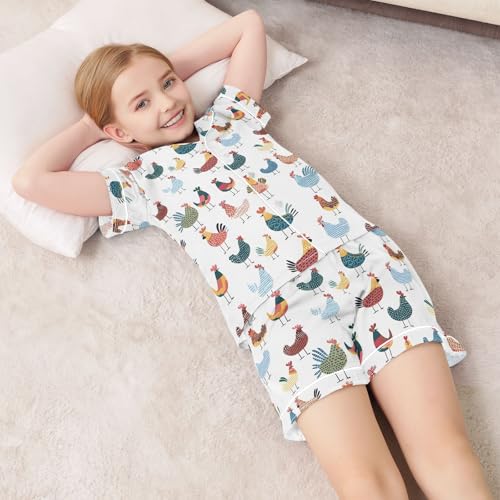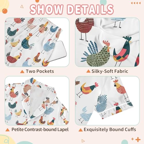 Colorful Cartoon Chicken Summer Satin Pajama Set, Cute Button-Down Sleepwear Pj Set for Sleep Wears 4