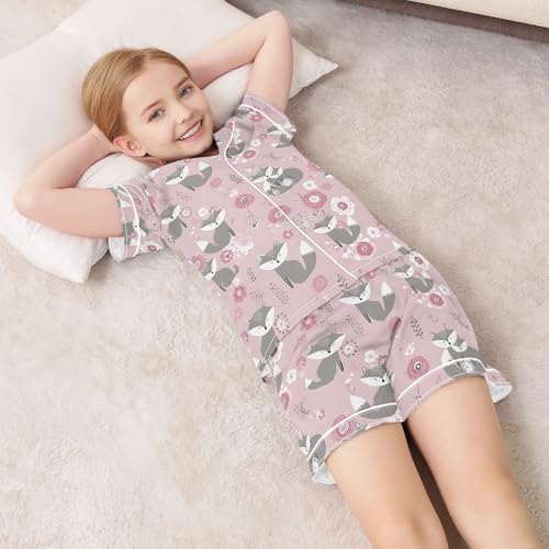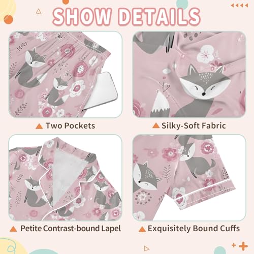 More information about Grey Fox Pattern Summer Satin Pajama Set, Cute Button-Down Sleepwear Pj Set for Sleep Wears