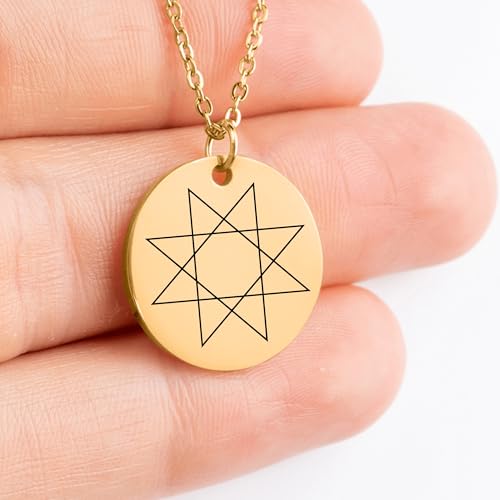 More information about Octagram Pendant Necklace - Custom Engraved Star Charm - Personalized Sacred Geometry Jewelry - Spiritual Protection Symbol - Meaningful Gift - Symbolic Pendant - Disc Charm