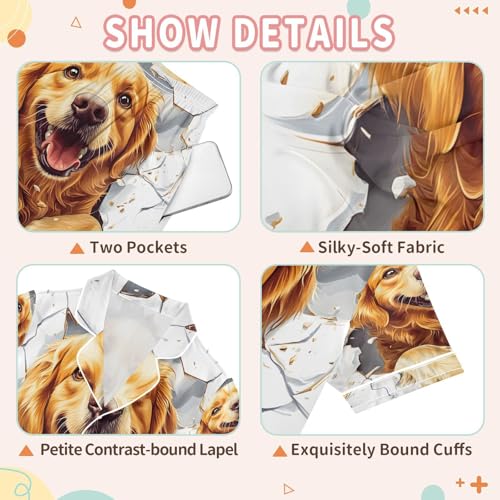 ALAZA Golden Retriever Puppy Dog White Satin Pajamas Set Short Sleeve Button Down Sleepwear Summer Pjs 2 Piece 4