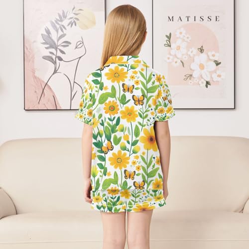senya Green Flower Butterflies A Satin Summer Pajama Sets Silk Short Sleeve Button Down Sleepwear 7
