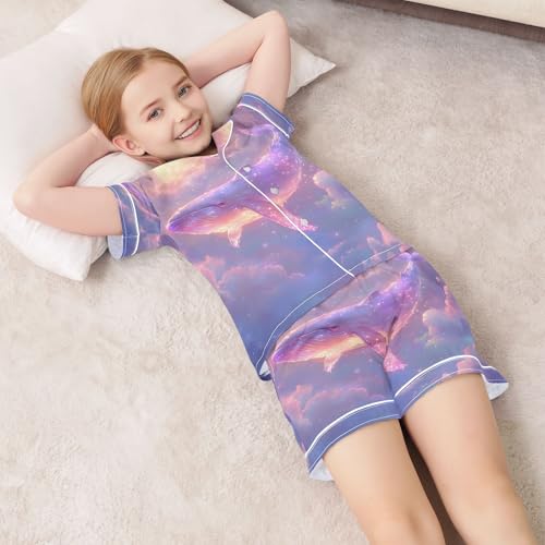ALAZA Moon Whale Sky Cloud Satin Pajamas Set Short Sleeve Button Down Sleepwear Summer Pjs 2 Piece 7
