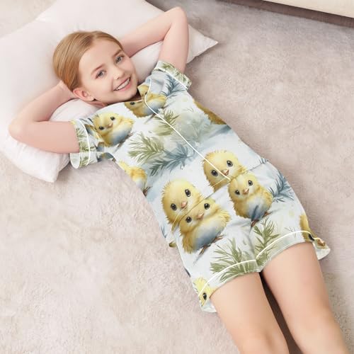 senya Chicken Pattern Yellow Satin Summer Pajama Sets Silk Short Sleeve Button Down Sleepwear 6