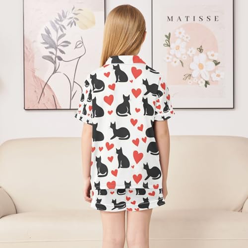 senya Silhouette Cats Hearts Satin Summer Pajama Sets Silk Short Sleeve Button Down Sleepwear 4