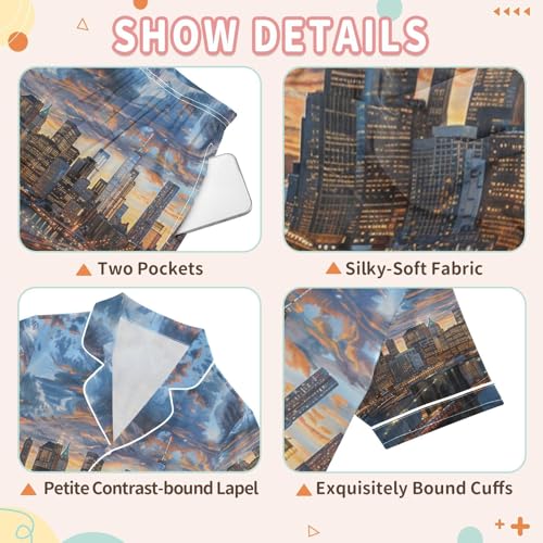 ALAZA Brooklyn Bridge and Manhattan at Sunset Satin Pajamas Set Short Sleeve Button Down Sleepwear Summer Pjs 2 Piece 6