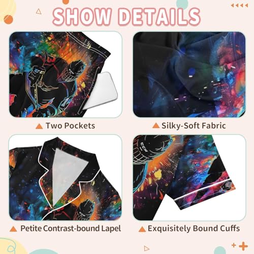 ALAZA Ice Hockey Player Hipster Satin Pajamas Set Short Sleeve Button Down Sleepwear Summer Pjs 2 Piece 6