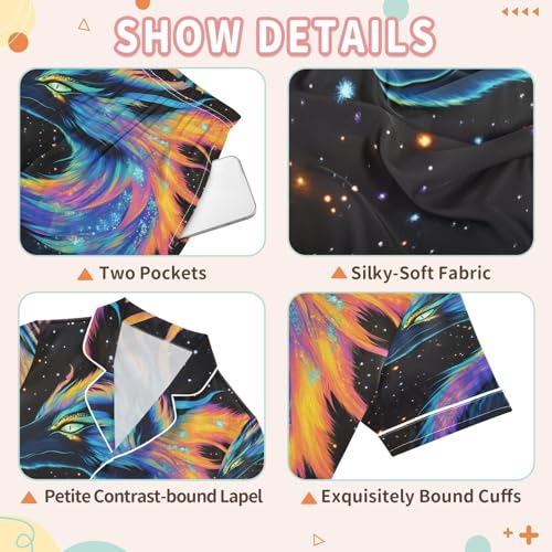 ALAZA Black Colorful Dragon Satin Pajamas Set Short Sleeve Button Down Sleepwear Summer Pjs 2 Piece 7