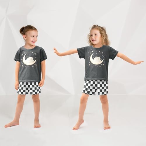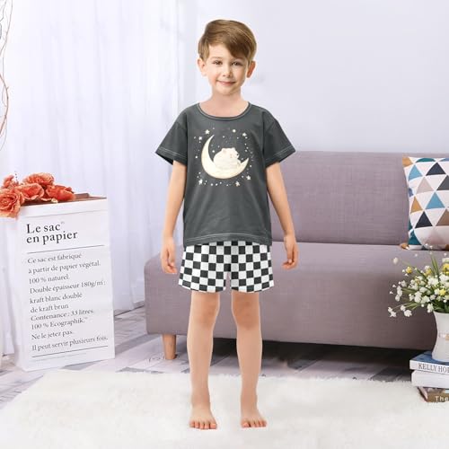 Checkerboard Plaid Bear Moon Black Pajama Set Short Sleeve Summer Pajamas Shorts Sets PJ Clothes Set Soft 5Y 5