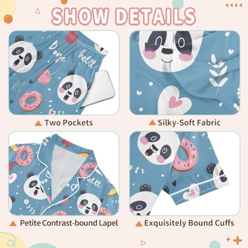 ALAZA Cute Panda Flower Donut Satin Pajamas Set Short Sleeve Button Down Sleepwear Summer Pjs 2 Piece 4