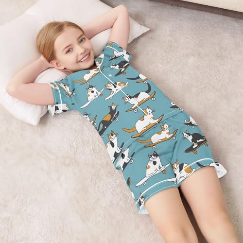ALAZA Cat Skateboard Kitten Satin Pajamas Set Short Sleeve Button Down Sleepwear Summer Pjs 2 Piece 7