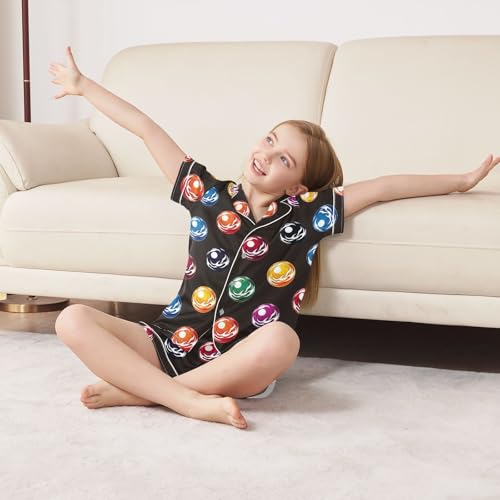 ALAZA Billiards Ball Black Satin Pajamas Set Short Sleeve Button Down Sleepwear Summer Pjs 2 Piece 7