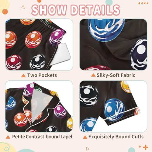 ALAZA Billiards Ball Black Satin Pajamas Set Short Sleeve Button Down Sleepwear Summer Pjs 2 Piece 6
