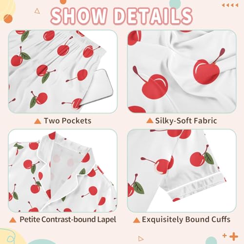 ALAZA Red Cherry Leaf White Satin Pajamas Set Short Sleeve Button Down Sleepwear Summer Pjs 2 Piece 4