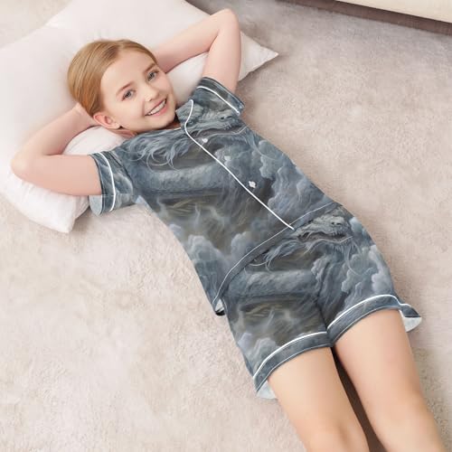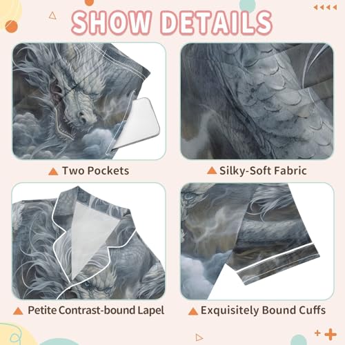 More information about ALAZA Chinese Dragon Gray Cloud Satin Pajamas Set Short Sleeve Button Down Sleepwear Summer Pjs 2 Piece