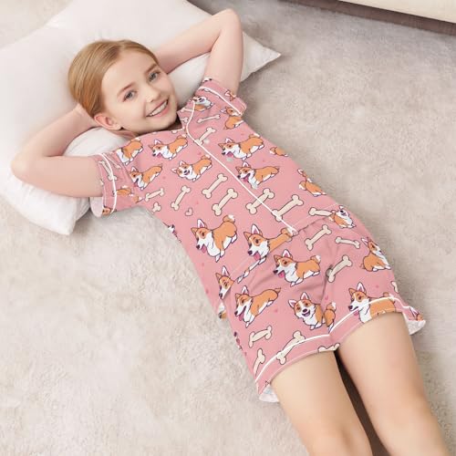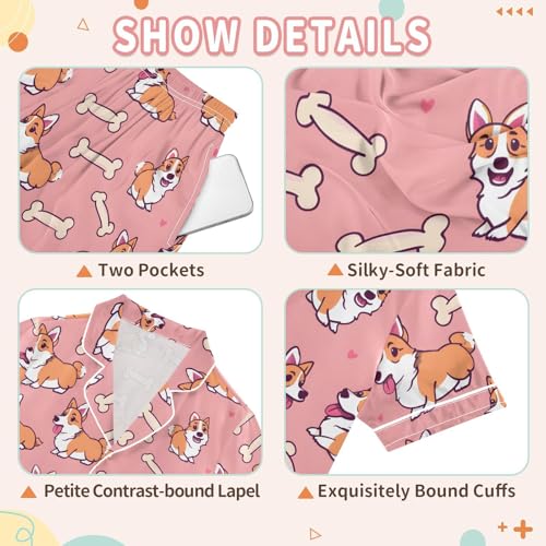 ALAZA Cute Dog Puppy Bone Heart Satin Pajamas Set Short Sleeve Button Down Sleepwear Summer Pjs 2 Piece 6