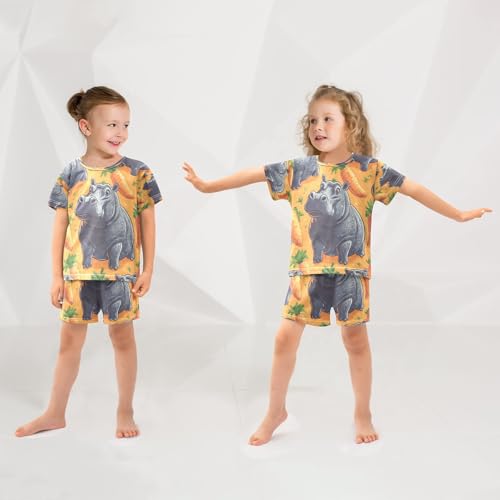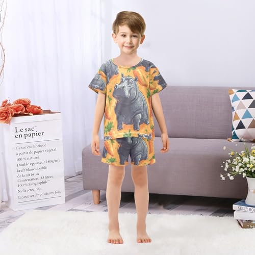 Pajama Sets Short Sleeve Hippo Carrot Soft Cotton Summer Sleepwear 2 Piece PJS Size 5-14T 1