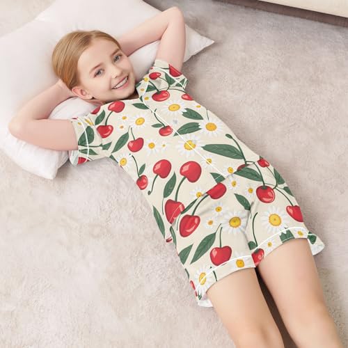 ALAZA Summer Daisy Cherry Fruit Satin Pajamas Set Short Sleeve Button Down Sleepwear Summer Pjs 2 Piece 1