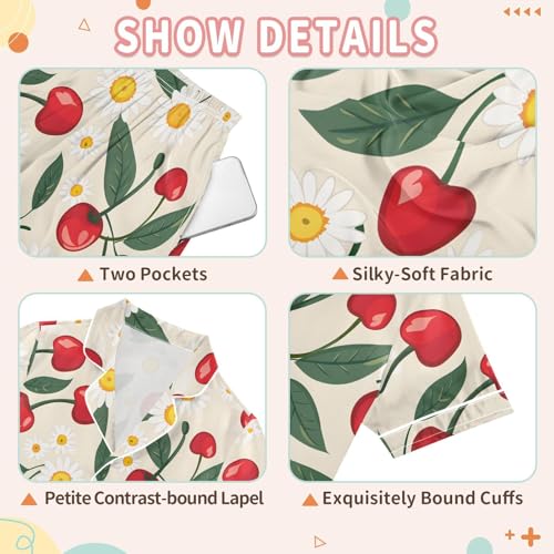 ALAZA Summer Daisy Cherry Fruit Satin Pajamas Set Short Sleeve Button Down Sleepwear Summer Pjs 2 Piece 7
