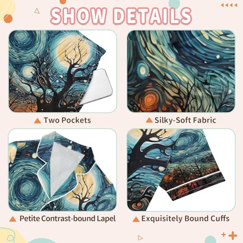 ALAZA Van Gogh Landscape Starry Night Satin Pajamas Set Short Sleeve Button Down Sleepwear Summer Pjs 2 Piece 7