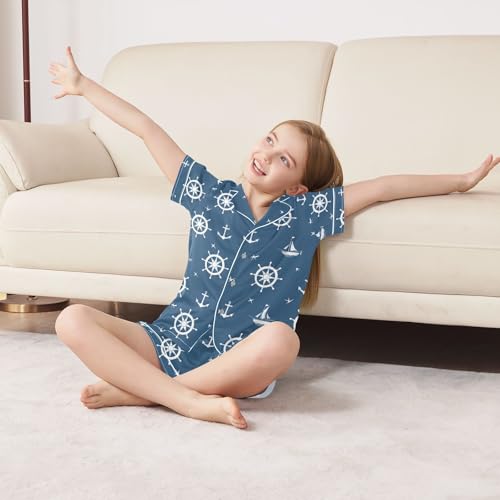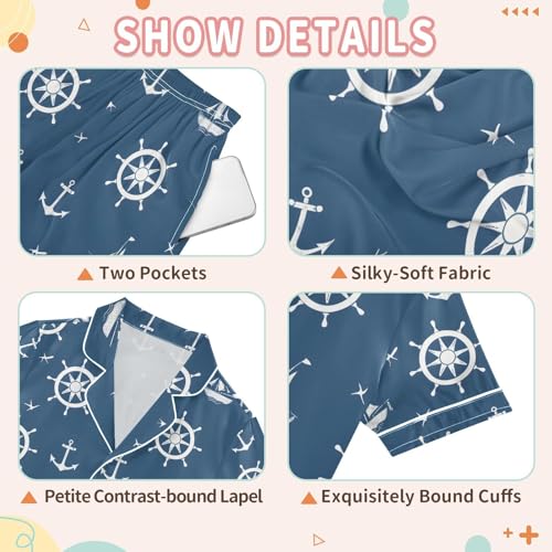 ALAZA Blue Nautical Anchor Pajamas Satin Pajama Set Short Sleeve Button Down Sleepwear 6