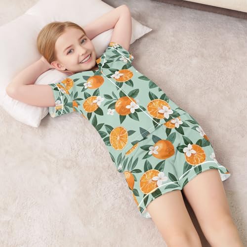 ALAZA Orange Fruit with White Flower Pajamas Satin Pajama Set Short Sleeve Button Down Sleepwear 3