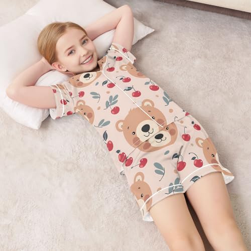 ALAZA Cartoon Bear Cherry Pajamas Satin Pajama Set Short Sleeve Button Down Sleepwear 1