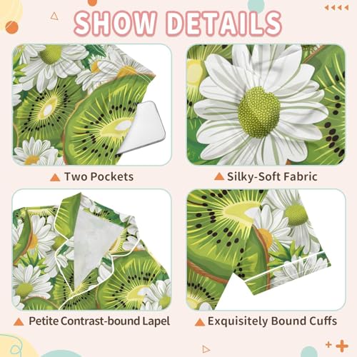 ALAZA Kiwi Fruit Daisy Flower Green Pajamas Satin Pajama Set Short Sleeve Button Down Sleepwear 4