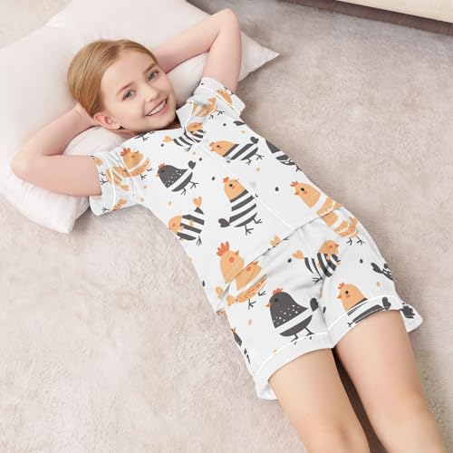 HOT ! ALAZA Cute Chicken on White Pajamas Satin Pajama Set Short Sleeve Button Down Sleepwear