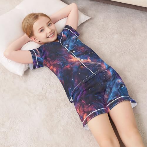 ALAZA Lion Starry Sky Galaxy Pajamas Satin Pajama Set Short Sleeve Button Down Sleepwear 1