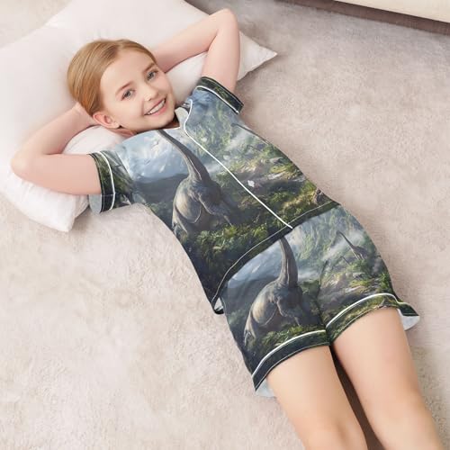 More information about ALAZA Fly Animal Dinosaur Tree Satin Pajamas Set Short Sleeve Button Down Sleepwear Summer Pjs 2 Piece