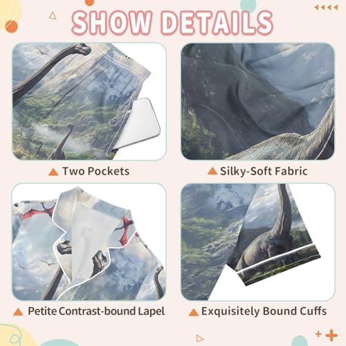 ALAZA Fly Animal Dinosaur Tree Satin Pajamas Set Short Sleeve Button Down Sleepwear Summer Pjs 2 Piece 4