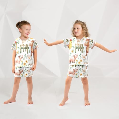 Pajama Sets Short Sleeve Farm Animals on Fence Soft Cotton Summer Sleepwear 2 Piece PJS Size 5-14T 1
