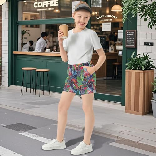 Girls Lounge Shorts Tiki Masks Tropical Plants Athletic Pajama Sleepwear Colorful Summer Clothes Kids Teens, X-Small 4