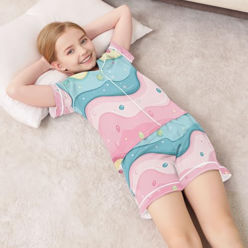 ALAZA Cute Ice Cream Satin Pajamas Set Short Sleeve Button Down Sleepwear Summer Pjs 2 Piece 1