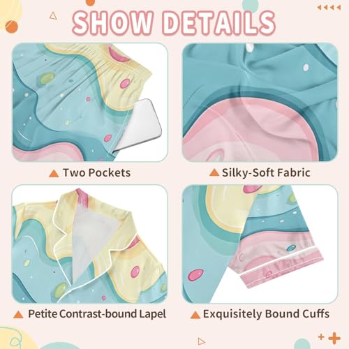 ALAZA Cute Ice Cream Satin Pajamas Set Short Sleeve Button Down Sleepwear Summer Pjs 2 Piece 7