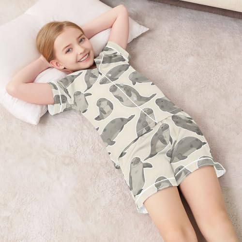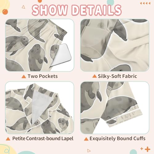 ALAZA Manatee Cartoon Satin Pajamas Set Short Sleeve Button Down Sleepwear Summer Pjs 2 Piece 7