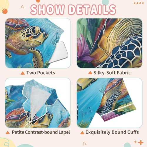 More information about ALAZA Sea Turtle Flower Blossom Satin Pajamas Set Short Sleeve Button Down Sleepwear Summer Pjs 2 Piece