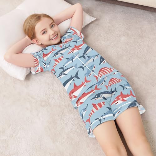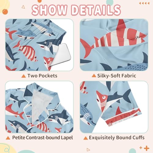 ALAZA Cute Fish on Blue Satin Pajamas Set Short Sleeve Button Down Sleepwear Summer Pjs 2 Piece 6