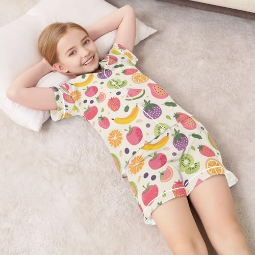 ALAZA Watermelon Strawberry Banana Pajamas Satin Pajama Set Short Sleeve Button Down Sleepwear 6