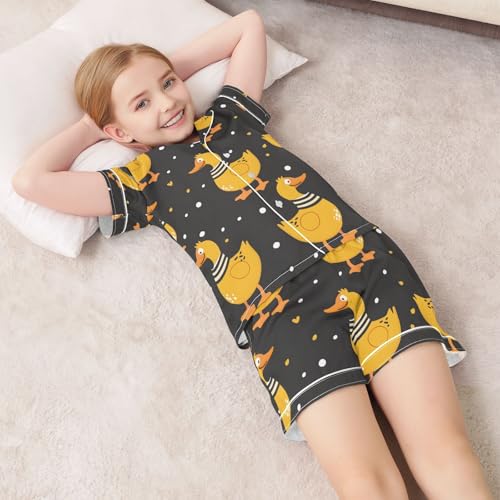 ALAZA Duck Heart Polka Dots Pajamas Satin Pajama Set Short Sleeve Button Down Sleepwear 1