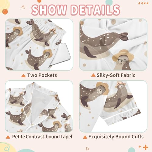 ALAZA Cute Seal Dot Satin Pajamas Set Short Sleeve Button Down Sleepwear Summer Pjs 2 Piece 1