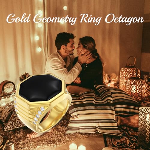 • [Material]: This geometric signet ring is made of 18k gold plated silver. Craftsmanship 15 carat natural onyx stone. Hypoallergenic allows for comfortable wear, especially for those with sensitive skin.