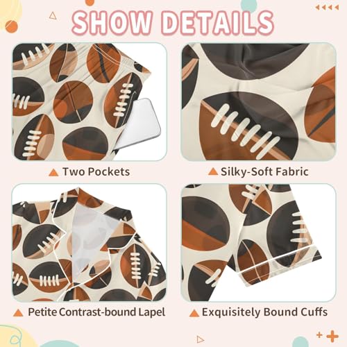 ALAZA Colorful Rugby Ball Sport Satin Pajamas Set Short Sleeve Button Down Sleepwear Summer Pjs 2 Piece 6