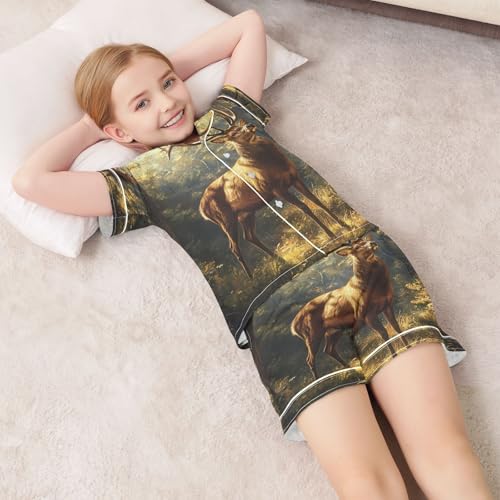 More information about ALAZA Deer Tree Sun Animal Satin Pajamas Set Short Sleeve Button Down Sleepwear Summer Pjs 2 Piece