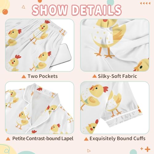 ALAZA Funny Chicken White Satin Pajamas Set Short Sleeve Button Down Sleepwear Summer Pjs 2 Piece 7