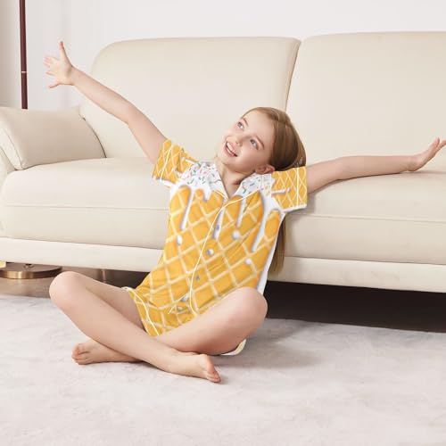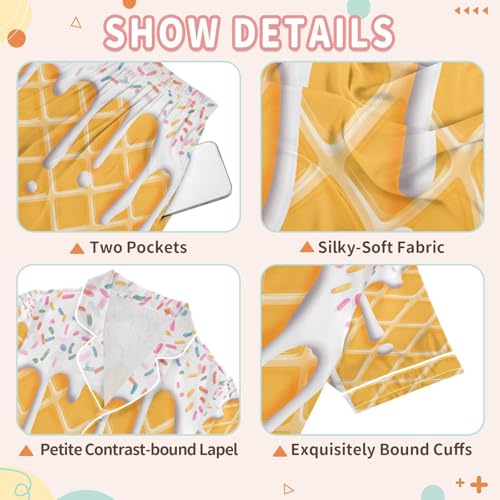 ALAZA Ice Cream Hipster Stylish Satin Pajamas Set Short Sleeve Button Down Sleepwear Summer Pjs 2 Piece 1