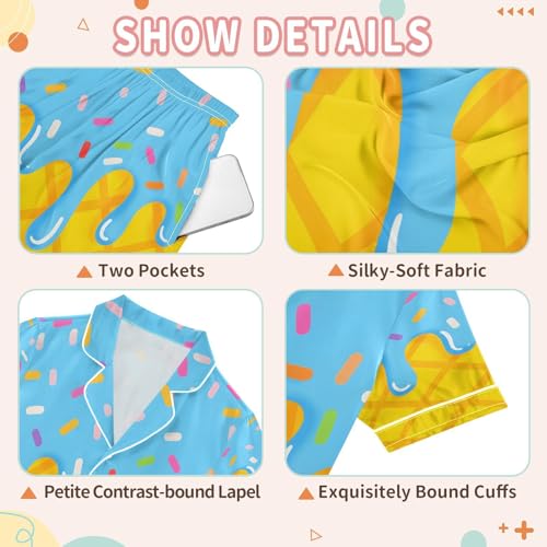 ALAZA Yellow Blue Ice Cream Satin Pajamas Set Short Sleeve Button Down Sleepwear Summer Pjs 2 Piece 4