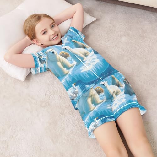 ALAZA Polar Bear Sea Lion Bird Satin Pajamas Set Short Sleeve Button Down Sleepwear Summer Pjs 2 Piece 1