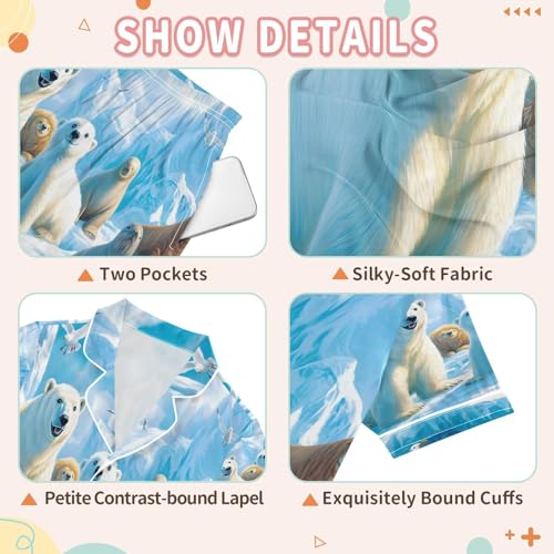 More information about ALAZA Polar Bear Sea Lion Bird Satin Pajamas Set Short Sleeve Button Down Sleepwear Summer Pjs 2 Piece