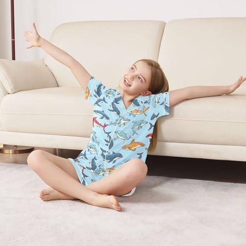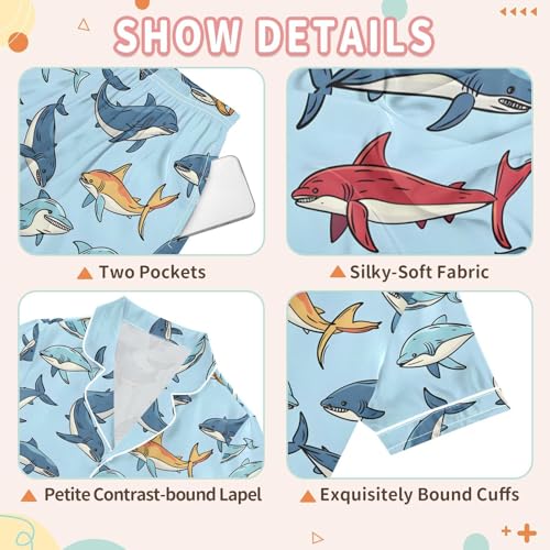 ALAZA Colorful Dolphin Blue Satin Pajamas Set Short Sleeve Button Down Sleepwear Summer Pjs 2 Piece 7